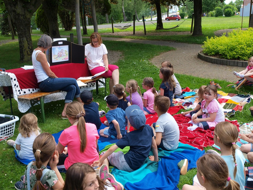 Bei herrlich warmen Sommerwetter fanden sich überaus viele Kinder und Erwachsene im Park in St. Veit am Vogau ein, um im Rahmen des 3. Steirischen Vorlesetages – einer Vorleseaktion des Landes Steiermark – nicht nur gemütlich zu picknicken, sondern auch aufmerksam einer spannenden Geschichte zu lauschen.